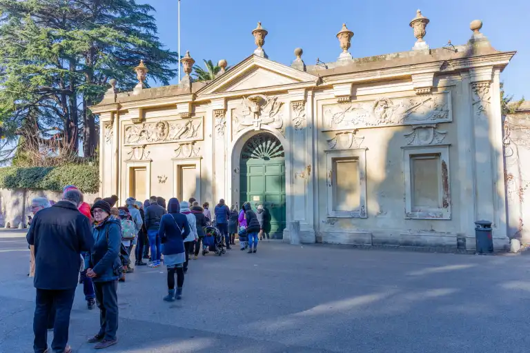 Pero lo más famoso de la villa es una sencilla puerta de madera con una cerradura de latón, frente a la que se forman largas colas de turistas. Si se asoma por ella, verá un espectáculo asombroso: una vista perfecta de la cúpula de la Basílica de San Pedro enmarcada entre los árboles del jardín de la Villa.