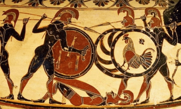 Así, Patroclo llega a la batalla vestido con la armadura de Aquiles y consigue asustar a los troyanos, quienes lo confunden con él y huyen.
