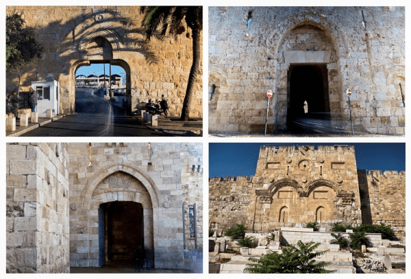 Testigos de las vicisitudes acaecidas en la milenaria ciudad de Jerusalén, las ocho puertas que atraviesan su muralla siguen siendo utilizadas – a excepción de la Puerta Dorada- por los miles de habitantes y visitantes de esta ciudad cada día. Dispuestas según las agujas del reloj y construidas de acuerdo con los puntos cardinales, atravesar cada una de ella lleva hasta un Jerusalén diferente, brindando al viandante la oportunidad de conocer ocho aspectos distintos de una ciudad cuyas calles cuentan la Historia de la Humanidad desde el siglo V a.C. Cada una posee diferentes nombres y conducen, hacia el exterior, hacia las principales ciudades de la región. Nosotros ahora, hacemos el recorrido inverso, nos vamos al interior de esta sorprendente ciudad.