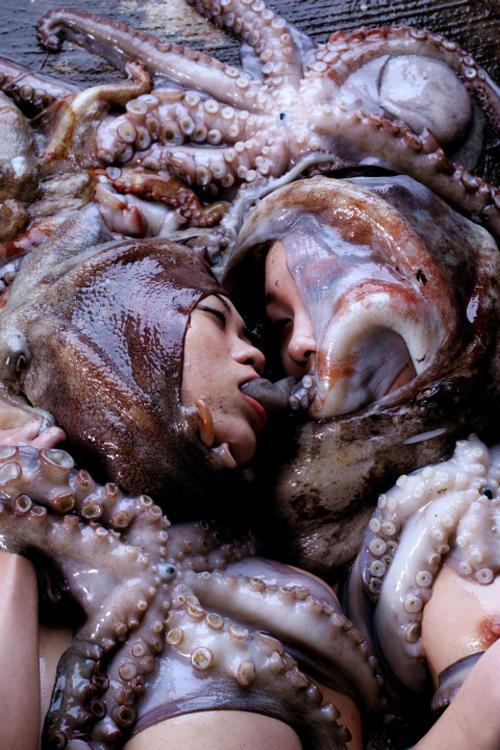El pulpo en occidente también ha sido un símbolo sexual recurrente, ya sea visto con horror como representación del malvado sexo femenino (los traumas de Lovecraft y su espanto hacia los seres húmedos, viscosos y marinos) o con violenta lubricidad por poetas como Lautréamont, o sus “hijos” surrealistas.