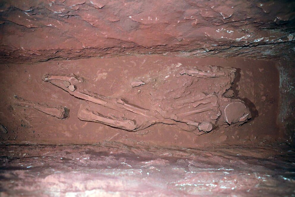 Entre los descubrimientos más impresionantes en la tumba recién revelada se encuentran 12 restos óseos intactos y una red de paredes que dividen la habitación, una característica estructural que no se había visto en ningún otro lugar de la antigua ciudad.