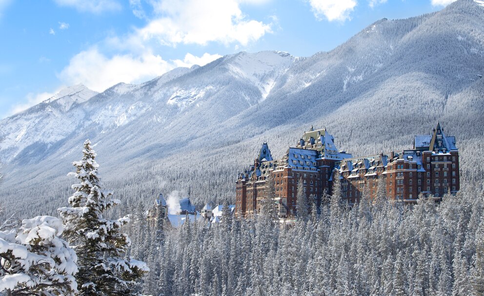 El Fairmont Banff Springs, ubicado en el corazón de las Montañas Rocosas canadienses, es un hotel de lujo con impresionante arquitectura y rodeado de paisajes espectaculares. Fue inaugurado en 1888, y desde ese entonces es un destino favorito gracias a su elegante diseño y su cercanía a la belleza natural del Parque Nacional Banff.