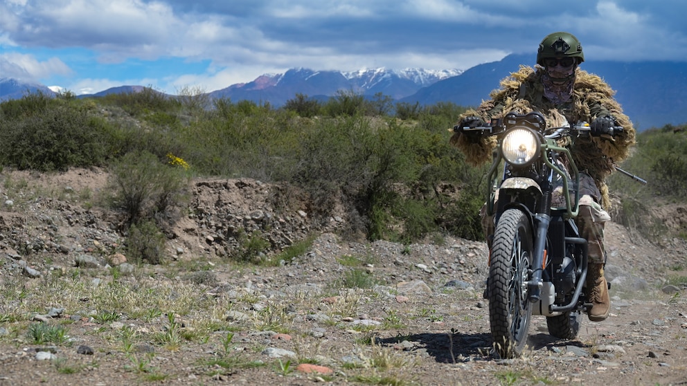 “Estas fracciones cumplen la misión de ser las adelantadas dentro del campo de combate. Las motos proporcionan rapidez en el cumplimiento de los objetivos. Son versátiles para el terreno”, contó el sargento primero Paulo García, encargado de una de las secciones del Regimiento que está integrada por personal con aptitudes y capacitaciones propias del ambiente geográfico particular de montaña, como los instructores de andinismo, esquí, cazadores, y paracaidistas.