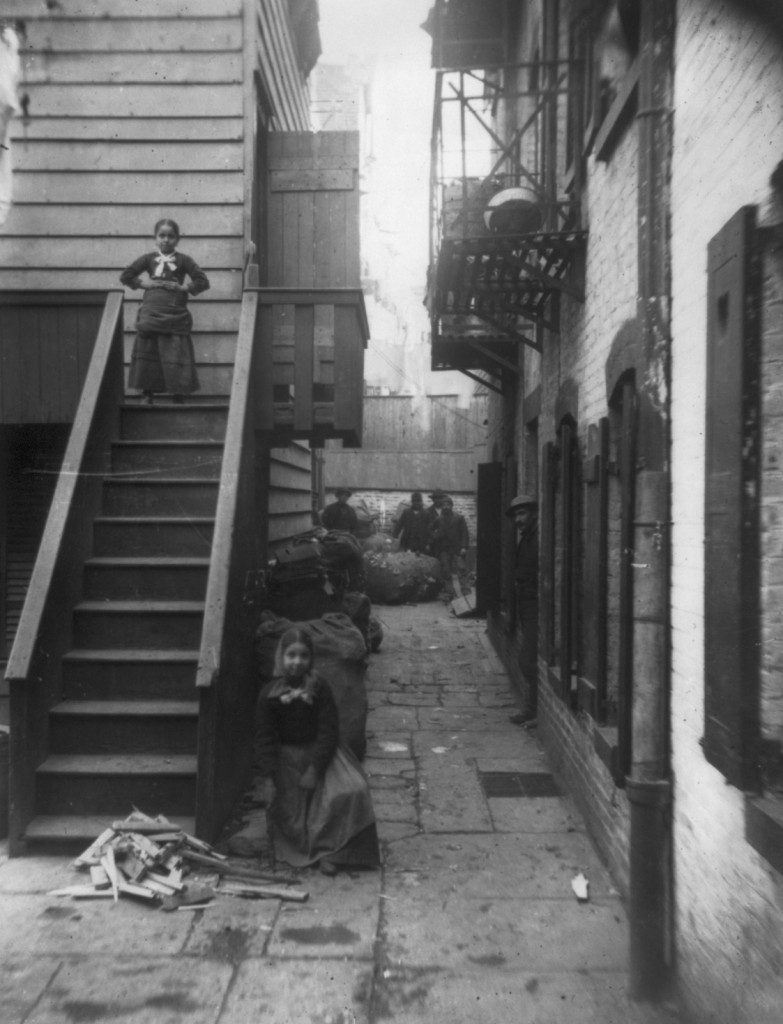 En Mulberry Bend se hicieron populares rincones como el callejón de los Bandidos, Bottle Alley o Ragpickers Row, zonas desoladas, prohibidas para el visitante. “Cientos de vecinos viven entre la inmundicia y la descomposición —escribía el Tribune en 1884—, no hay tuberías, desagües, lavaderos.