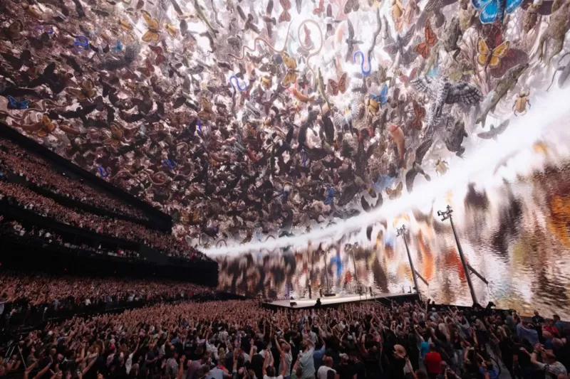La cubierta exterior de la esfera está completamente iluminada por una pantalla led de 54.000 m2, una superficie que equivale a cerca de 8 canchas de fútbol.